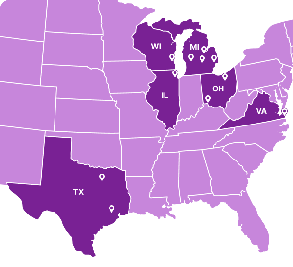 Crossbridge Hospice serves families in Illinois, Michigan, Ohio, Wisconsin, Texas, and Virginia. Select your state to view nearby locations.